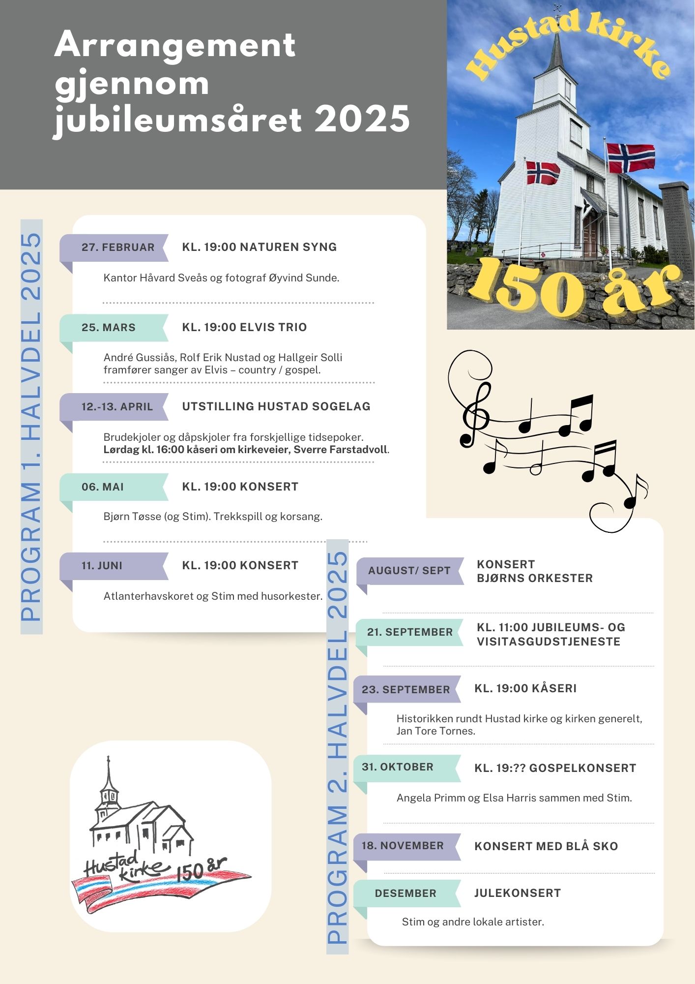 Mer informasjon legges ut løpende på vår facebook-side: Hustad kirke.