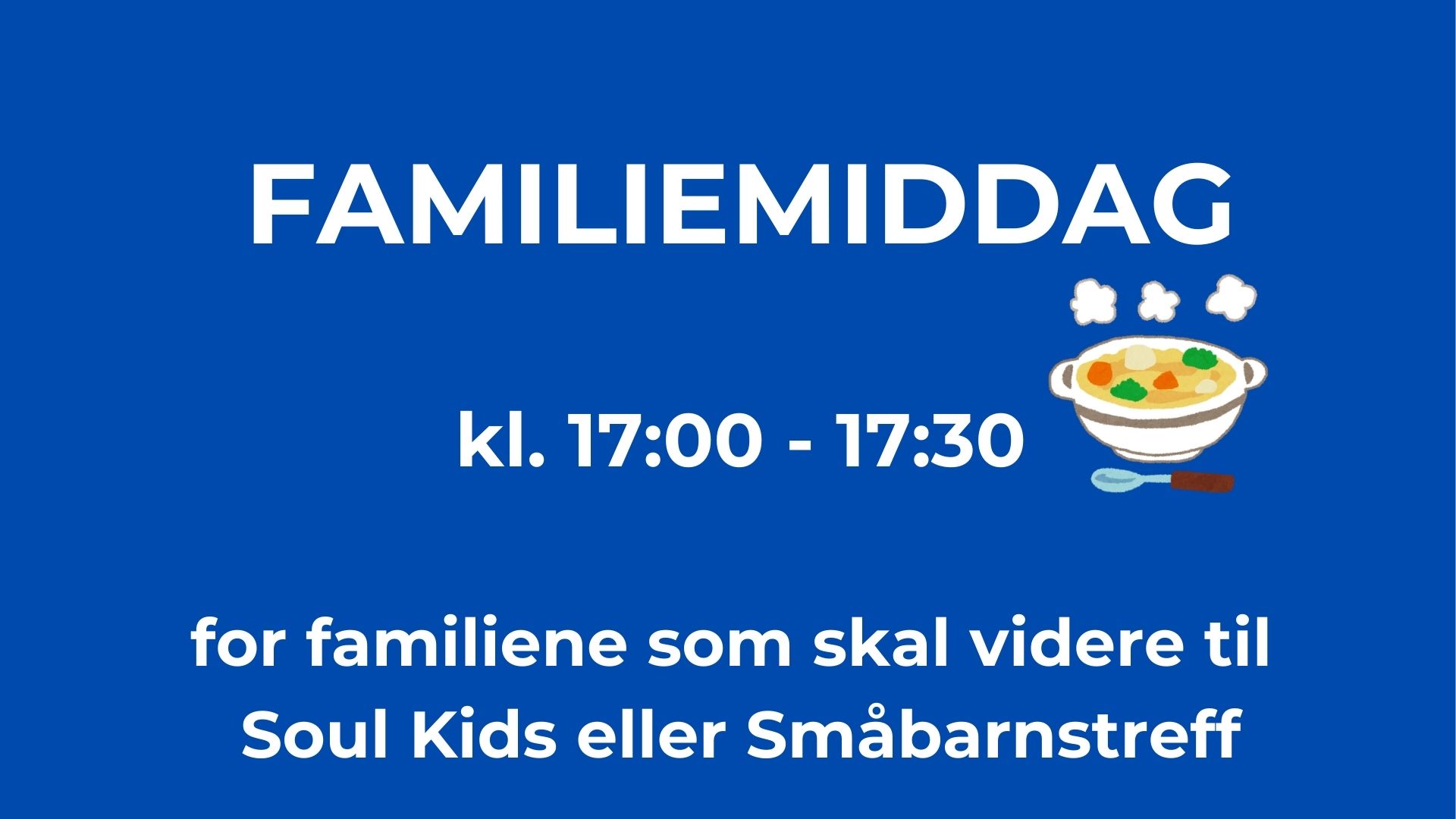 Varm middag for familiene som skal videre til Elnesvågen Soul Kids eller Sprell Levende Småbarnstreff